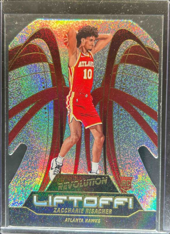 The Zaccharie Risacher 2024 Revolution #12 Liftoff! - Neutron /125 Rookie card is 1 of 112 Zaccharie Risacher's card variations in the 2024 Revolution set being tracked by Sports Card Investor, including Base, Astro, Blue Storm, Chinese New Year, and Fractal.