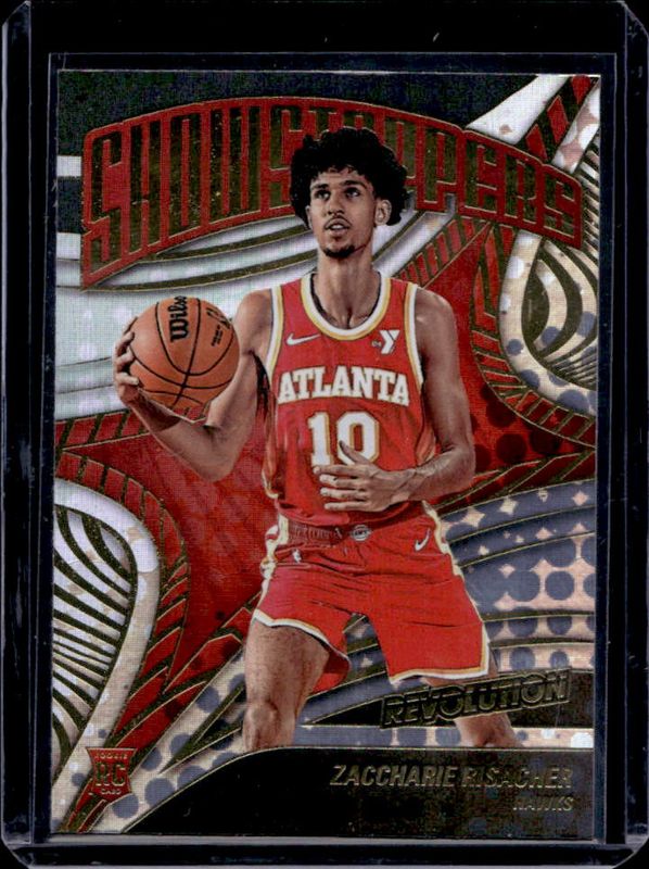 The Zaccharie Risacher 2024 Revolution #12 Showstoppers Rookie card is 1 of 112 Zaccharie Risacher's card variations in the 2024 Revolution set being tracked by Sports Card Investor, including Base, Astro, Blue Storm, Chinese New Year, and Fractal.