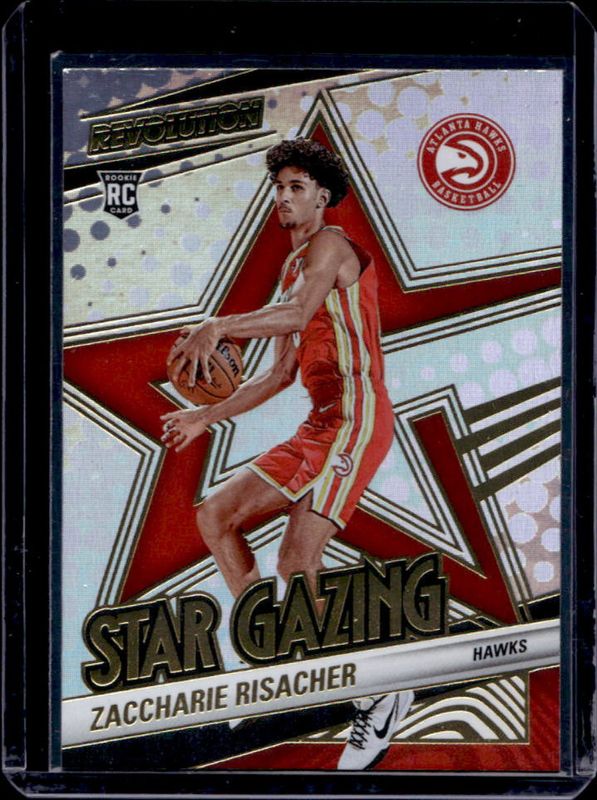The Zaccharie Risacher 2024 Revolution #16 Star Gazing Rookie card is 1 of 112 Zaccharie Risacher's card variations in the 2024 Revolution set being tracked by Sports Card Investor, including Base, Astro, Blue Storm, Chinese New Year, and Fractal.