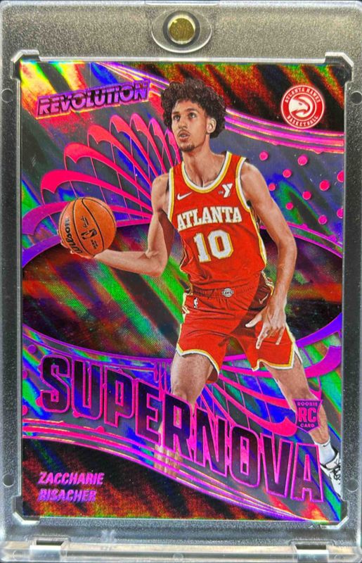 The Zaccharie Risacher 2024 Revolution #17 Supernova - Lava /10 Rookie card is 1 of 112 Zaccharie Risacher's card variations in the 2024 Revolution set being tracked by Sports Card Investor, including Base, Astro, Blue Storm, Chinese New Year, and Fractal.