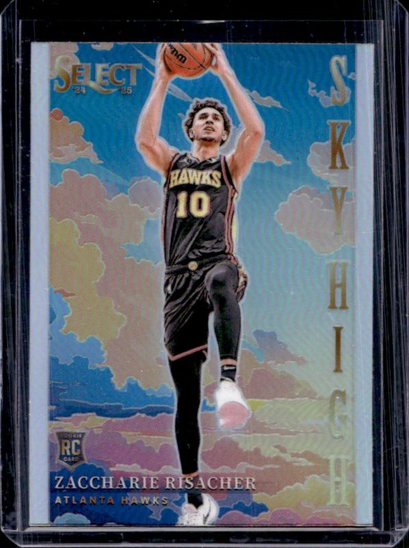 The Zaccharie Risacher 2024 Select #14 Sky High Silver Rookie card is 1 of 345 Zaccharie Risacher's card variations in the 2024 Select set being tracked by Sports Card Investor, including Concourse, Courtside, Mezzanine, Premier Level, and Concourse Blue Cracked Ice.