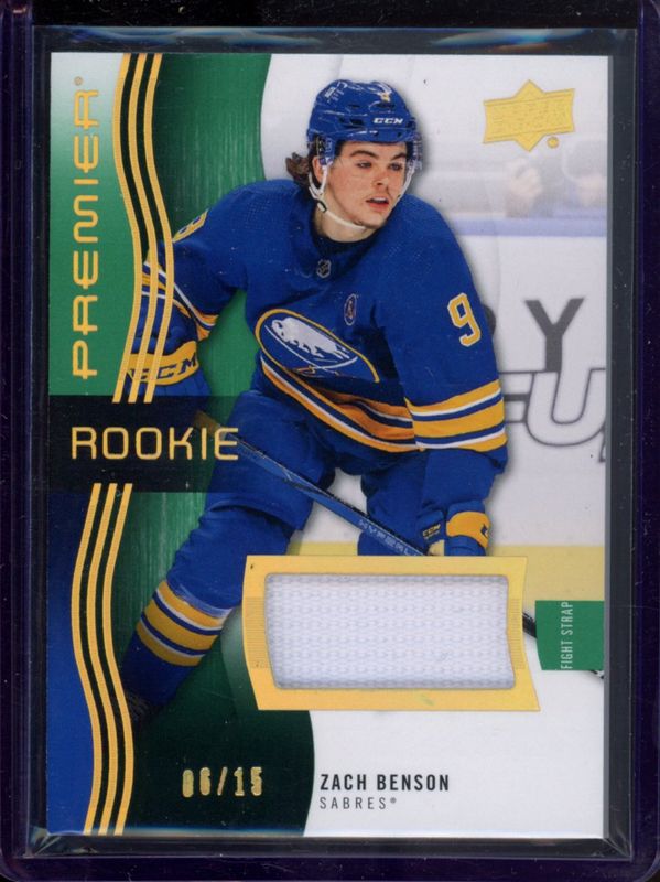 Zach Benson 2023 Upper Deck Premier #148 Fight Strap /15 Rookie RAW