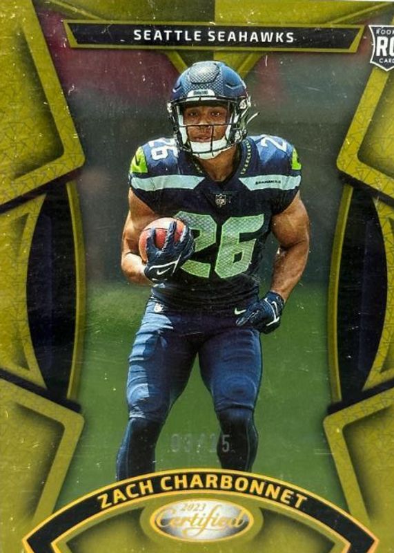 2023 Panini Certified Zach Charbonnet Gold #'d 15/25 RC Rookie Seahawks