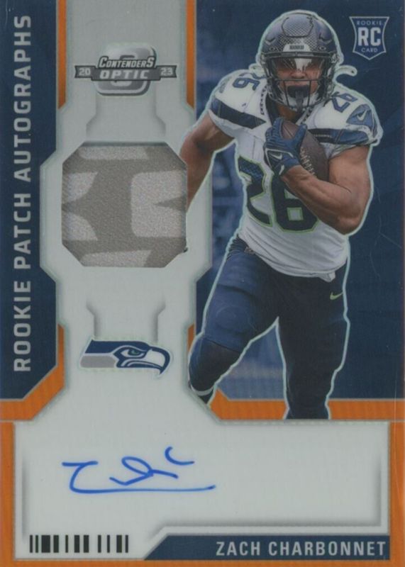 2023 Panini Contenders Optic Football RC Orange Patch Auto Zach Charbonnet 23/25