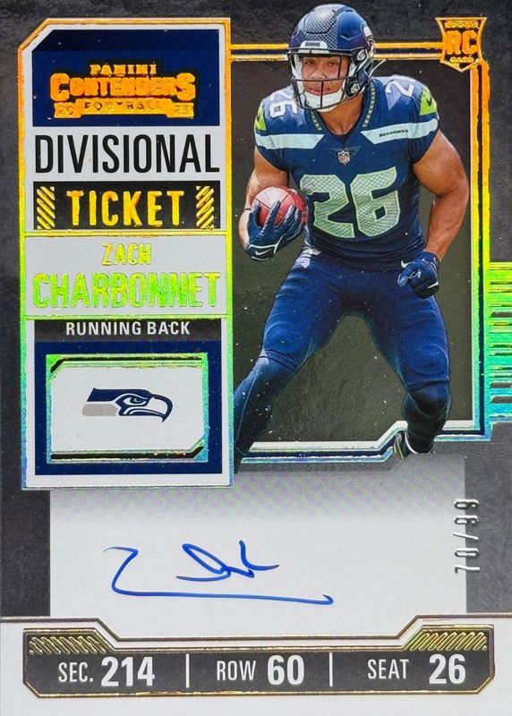 2023 Panini Contenders Zach Charbonnet Divisional Ticket Auto /99