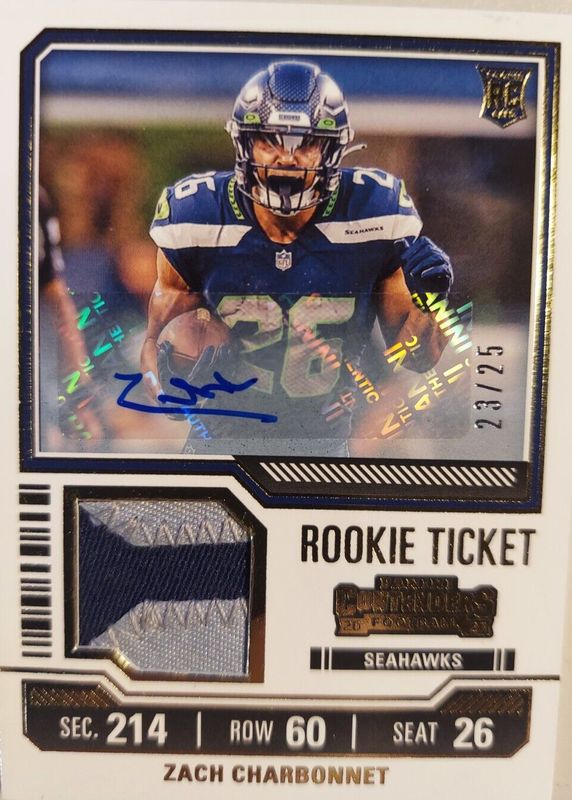 2023 Panini Contenders - Rookie Ticket Swatches Zach Charbonnet Auto #21/25 🔥