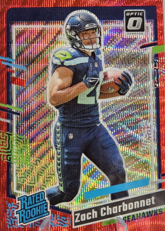 2023 Donruss Zach Charbonnet Rated Rookie Optic Preview Red Wave Prizm SEAHAWKS