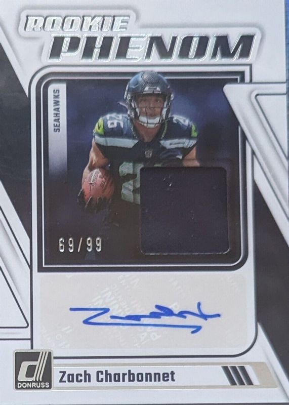 2023 Donruss Zach Charbonnet Rookie Phenom Jersey Auto RC #56/99 Seahawks