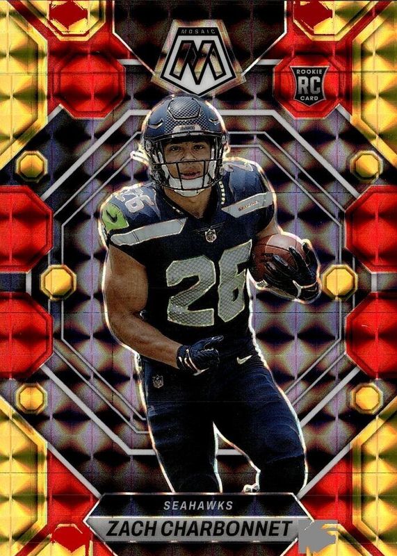 2023 MOSAIC FUSION RED YELLOW /80 ROOKIE 379 Zach Charbonnet - Seattle Seahawks
