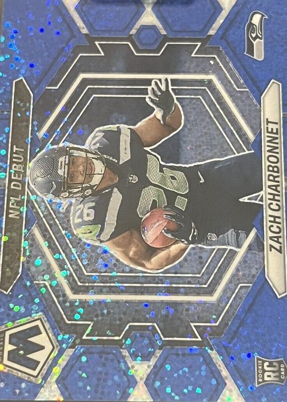 2023 Panini Mosaic Nfl Debut Zach Charbonnet #ND-11 Blue Sparkle Prizm /96 (RC)