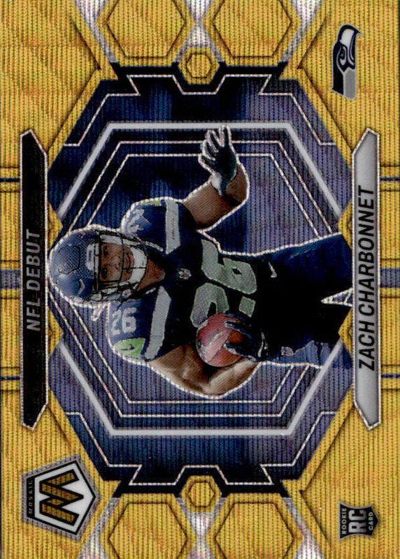 2023 Mosaic Zach Charbonnet NFL Debut Gold Wave Prizm Rookie RC #11/17 Seahawks