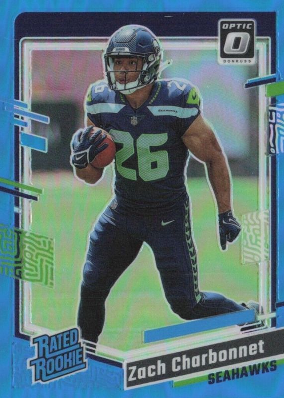 2023 Donruss Optic Zach Charbonnet Aqua Prizm Rated Rookie /299 Seahawks #294