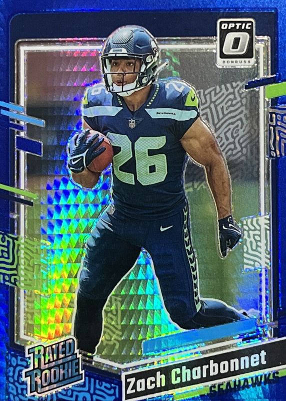 2023 Panini Optic Zach Charbonnet Blue Hyper Prizm Rated Rookie Seahawks #294