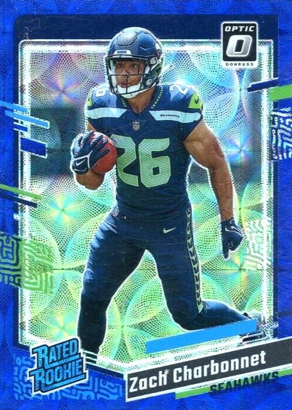 2023 Donruss Optic Zach Charbonnet Blue Scope Prizm Rated Rookie #294 Seahawks