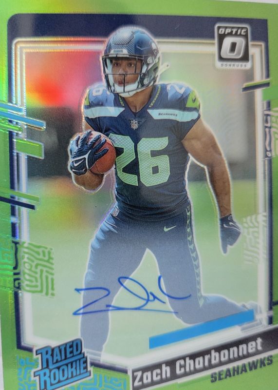 Auctions Ending Soon for Zach Charbonnet 2023 Optic #294 Rated Rookie Autographs - Green /5 RAW