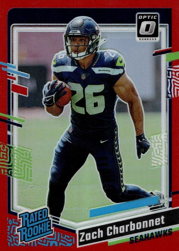 2023 Donruss Optic Rated Rookie Red Prizm Zach Charbonnet #294 /99