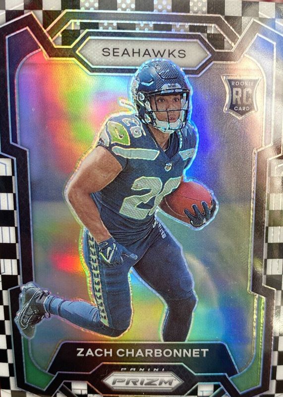 2023 Panini Prizm Zach Charbonnet Black & White Checkerboard #392 Seahawks SP RC