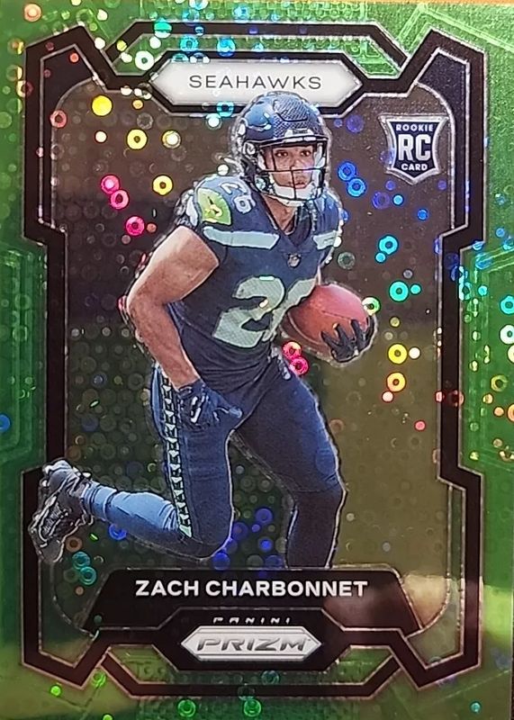 This card is 1 of 90 Zach Charbonnet's card variations in the 2023 Prizm set being tracked by Sports Card Investor, including Base, Disco, Green, Green Ice, and Green Wave.