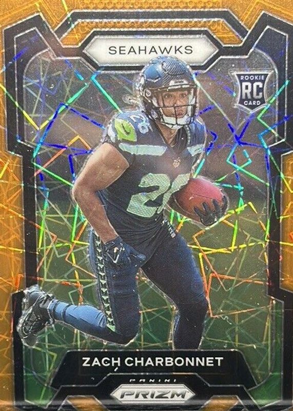 2023 Panini Prizm Zach Charbonnet "ORANGE" Ice Rookie RC 392 SP SEATTLE SEAHAWKS