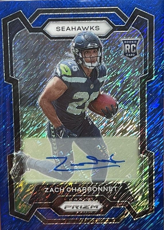 2023 Prizm ZACH CHARBONNET #392 RC Rookie FOTL Blue Shimmer AUTO #/25 - Seahawks