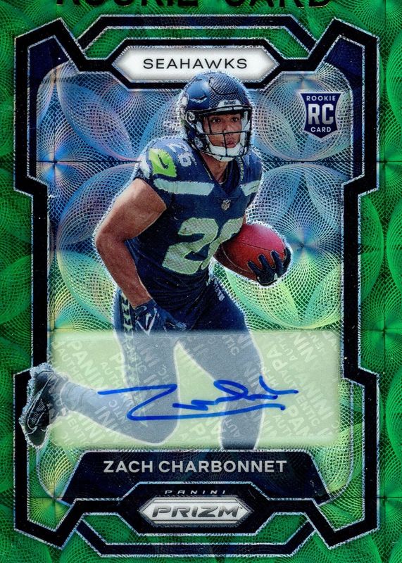 2023 Panini Prizm Rookies Green Scope /75 Zach Charbonnet #392 Rookie Auto RC
