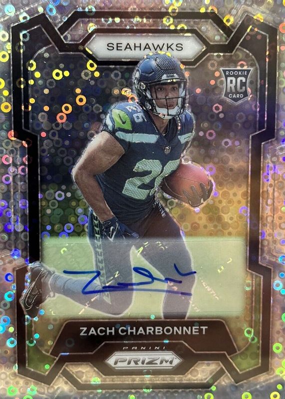 2023 Prizm No Huddle ZACH CHARBONNET SILVER DISCO Auto Rookie #392 RC Seahawks A