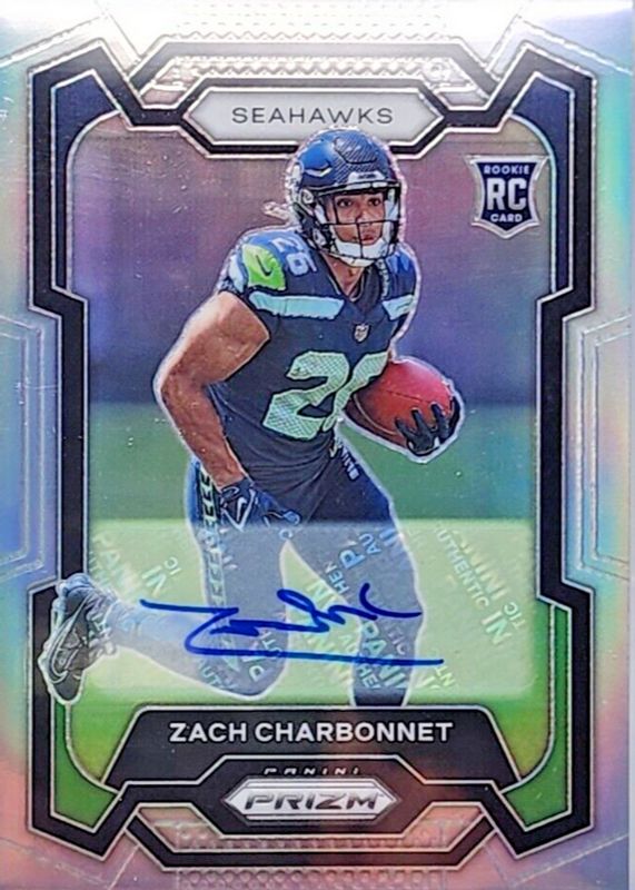2023 Panini Prizm Zach Charbonnet Silver Prizm Rookie Auto #392 RC Seahawks