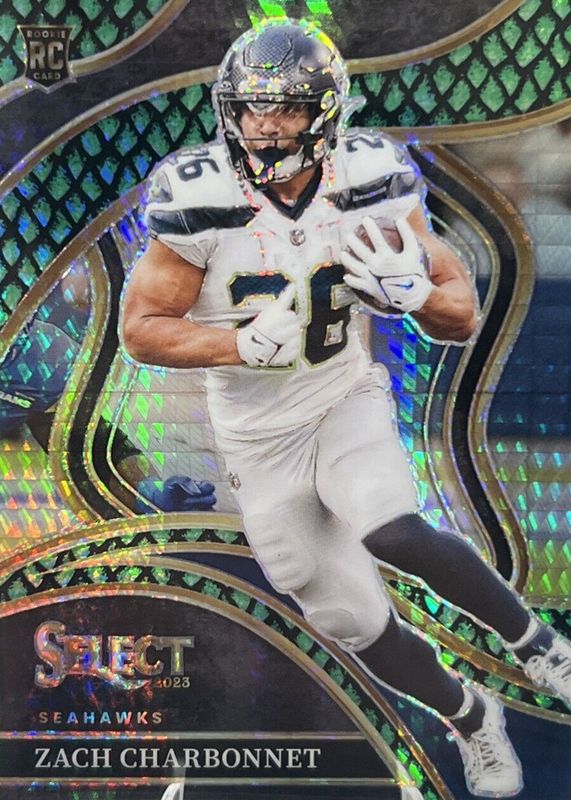 2023 Select Zach Charbonnet RC Dragon Scale Prizms Club #/70 Seahawks
