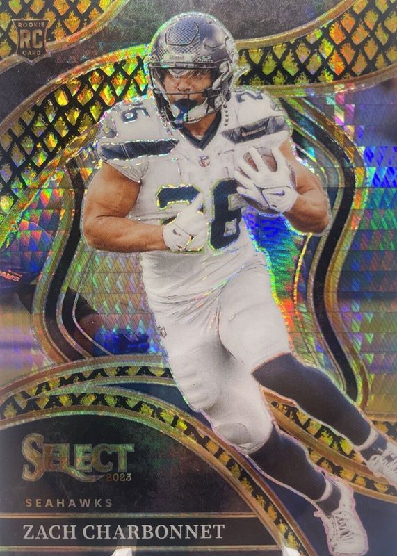 This card is 1 of 95 Zach Charbonnet's card variations in the 2023 Select set being tracked by Sports Card Investor, including Club Level, Concourse, Club Level Black & Gold Die-Cut, Club Level Black & Green Die-Cut, and Club Level Black & Red Die-Cut.
