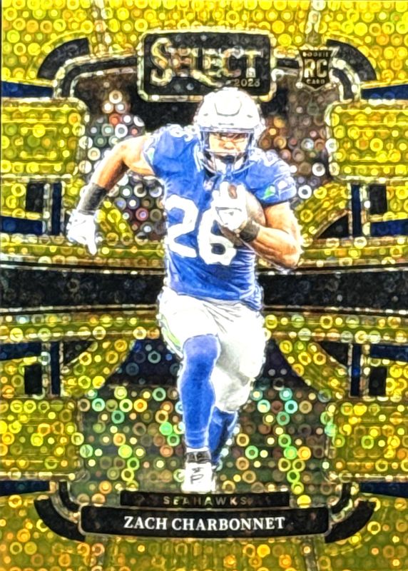 Auctions Ending Soon for Zach Charbonnet 2023 Select #86 Concourse Gold Disco /10 Rookie RAW