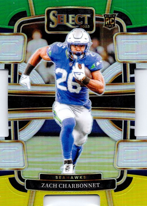 2023 Select Football Zach Charbonnet #86 RC Green Yellow Die-Cut Seahawks