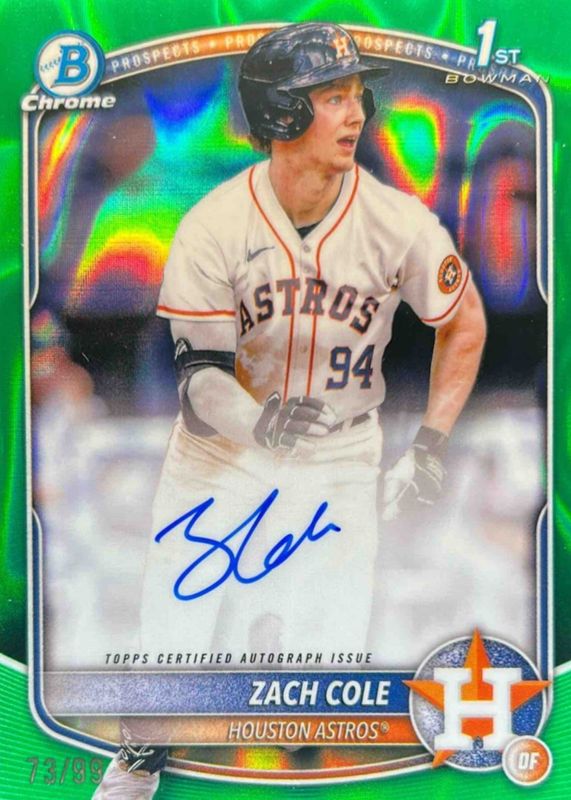 2025 Bowman Chrome Zach Cole 1st Bowman Green Lava Refractor Auto 96/99 Astros