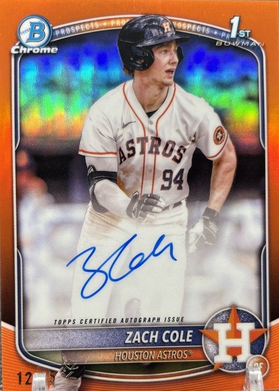 Best Prices Available For Sale of Zach Cole 2025 Bowman Chrome #CPA-ZC Prospect Auto - Orange Refractor /25 (1st)
