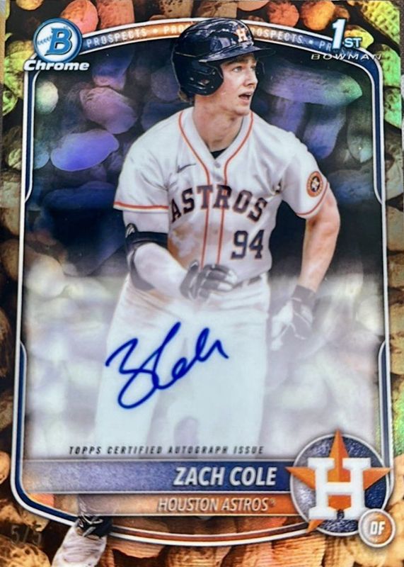 Zach Cole 2025 Bowman Chrome #CPA-ZC Prospect Auto - Peanuts Refractor /5 (1st) RAW Price Guide