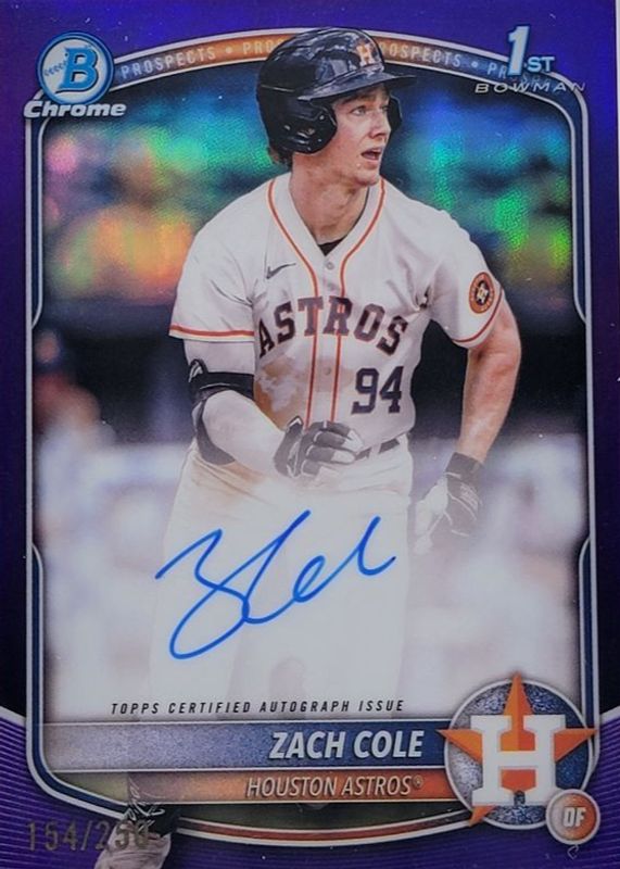 2025 Bowman Chrome Zach Cole Auto Purple Refractor 1st #91/250 Astros
