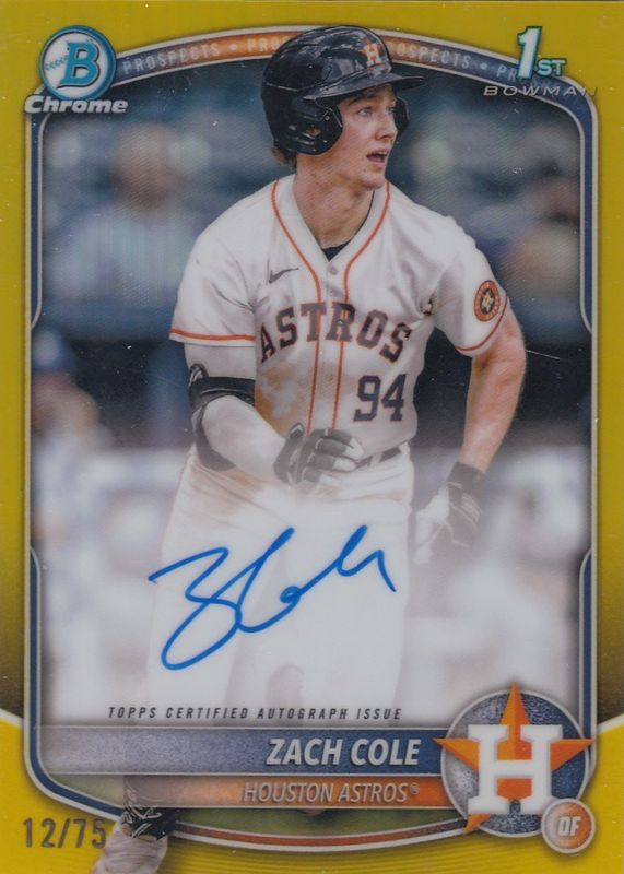 2025 Bowman Chrome ZACH COLE 1st Bowman Auto Yellow Refractor #/75 Astros CPA-ZC