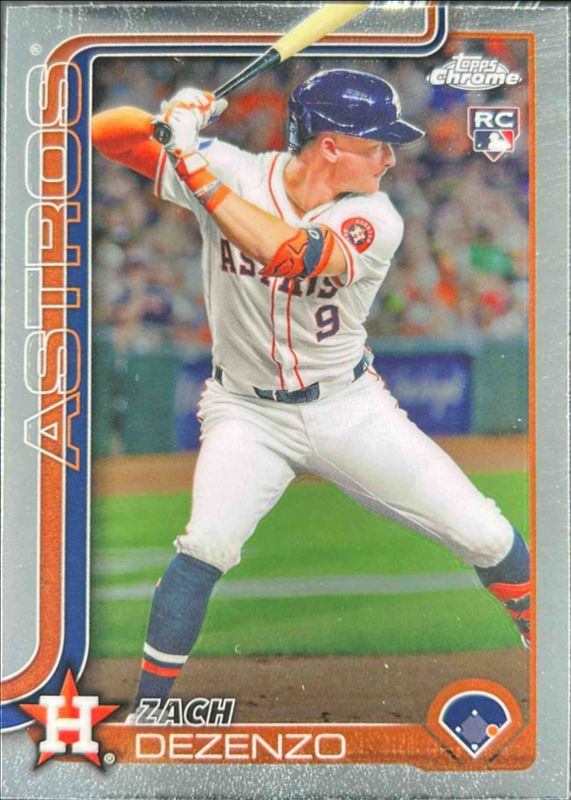 The Zach Dezenzo 2025 Topps Chrome #294 Base Rookie card is 1 of 73 Zach Dezenzo's card variations in the 2025 Topps Chrome set being tracked by Sports Card Investor, including Geometric Refractor, Lightboard Logo Variation, Negative Refractor, Prism Refractor, and RayWave Refractor.