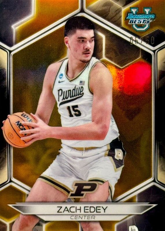 ZACH EDEY 2023-24 BOWMANS BEST UNIVERSITY GOLD REFRACTOR /50 SP- PURDUE #74🔥🔥