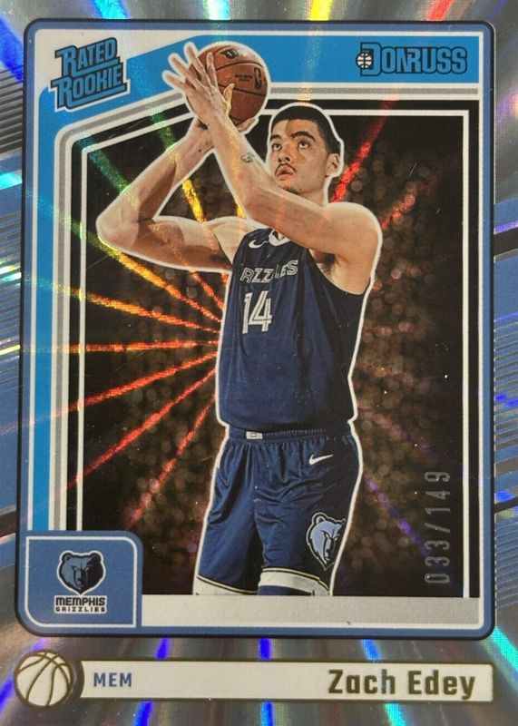 2024 DONRUSS ZACH EDEY #239 Rated Rookie HOLO LASER /149 Memphis Grizzlies RC