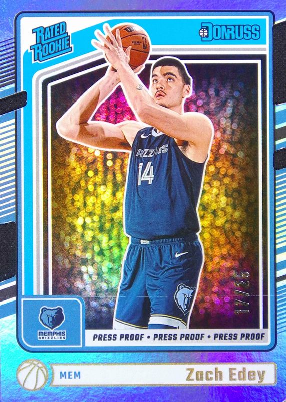 Zach Edey 2024 Donruss #239 Press Proof Gold Die-Cut /25 Rookie RAW Price Guide