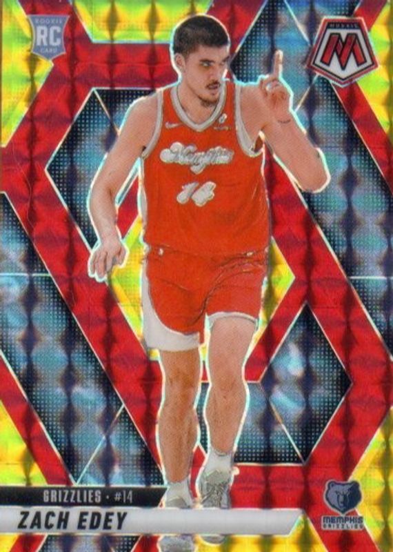 Recent Sales of Zach Edey 2024 Mosaic #248 Choice Fusion Red & Yellow /75 Rookie Raw