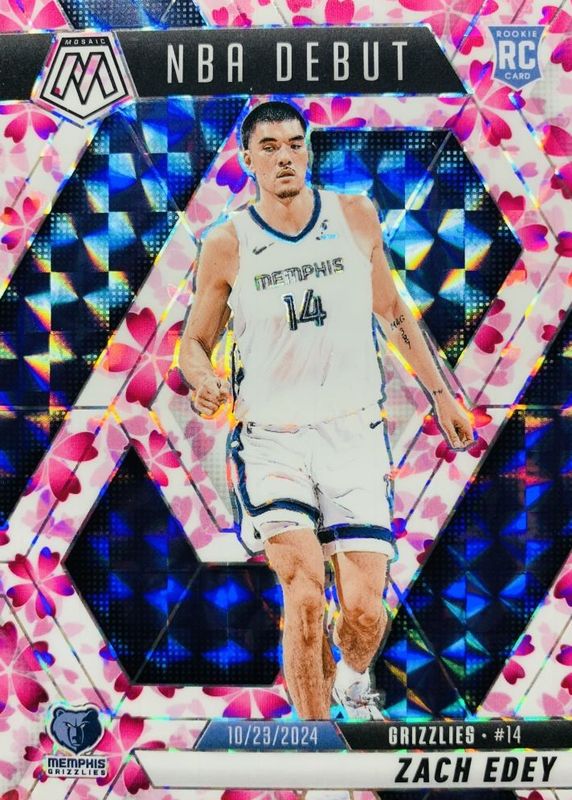 The Zach Edey 2024 Mosaic #251 NBA Debut - Choice Cherry Blossom /20 Rookie card in Raw condition has not changed in price in the last 30 days and was last sold for $29.00 .