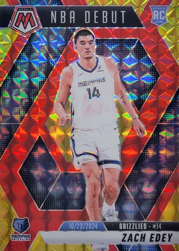 ZACH EDEY 2024-25 MOSAIC NBA DEBUT ROOKIE RED YELLOW FUSION RC /75 Q4193