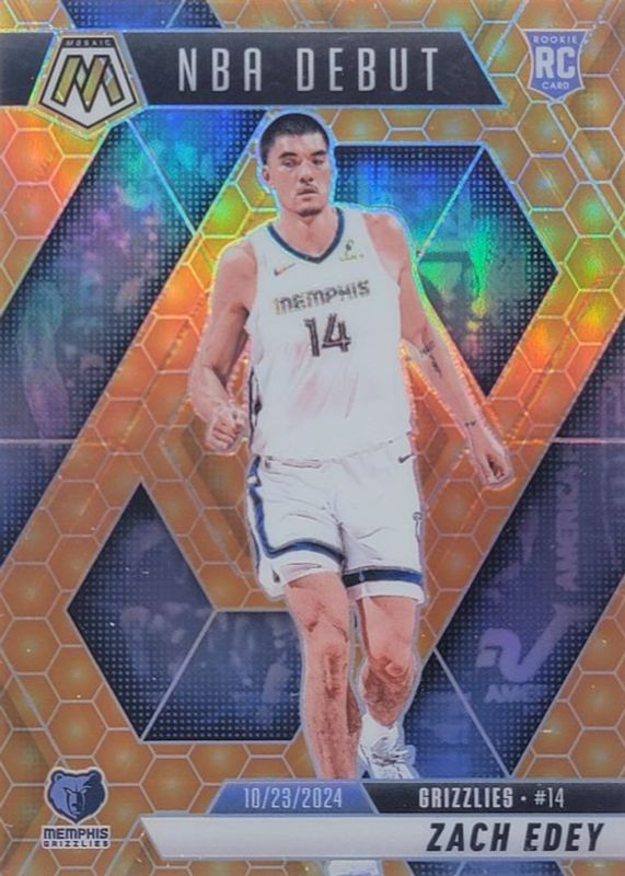 The Zach Edey 2024 Mosaic #251 NBA Debut - Honeycomb /(SSP) Rookie card in Raw condition has not changed in price in the last 30 days and was last sold for $27.50 .