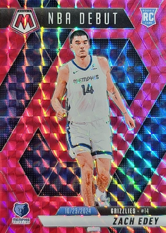 ZACH EDEY 2024-25 MOSAIC NBA DEBUT ROOKIE PINK PRIZM GRIZZLIES RC /175 Q4945