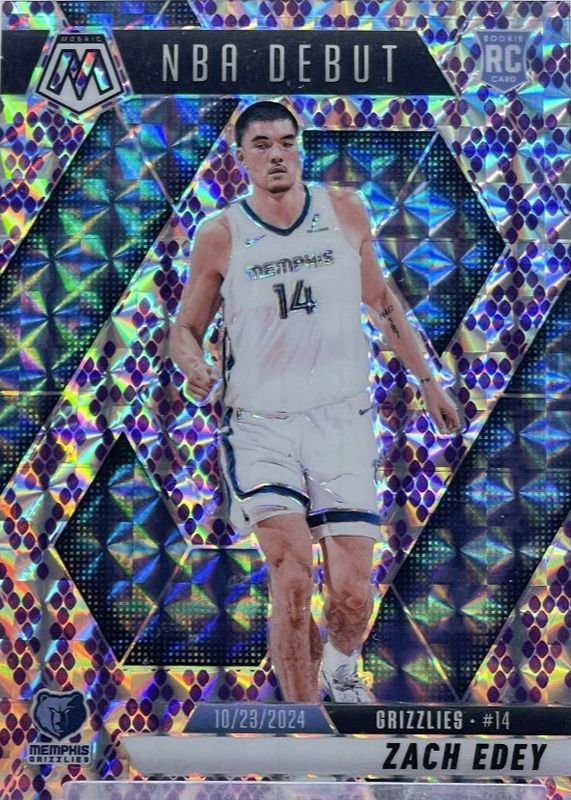 This card is 1 of 135 Zach Edey's card variations in the 2024 Mosaic set being tracked by Sports Card Investor, including Base, NBA Debut, Choice Red & Green, Fast Break, and Green.