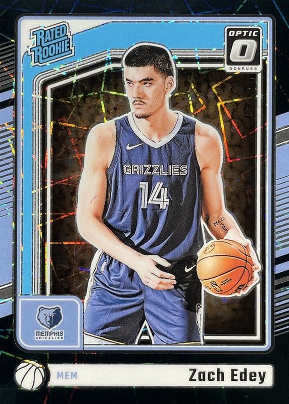 This card is 1 of 141 Zach Edey's card variations in the 2024 Optic set being tracked by Sports Card Investor, including Base, Blue Velocity, Checkerboard, Choice, and Fast Break.