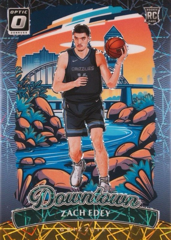 This card is 1 of 141 Zach Edey's card variations in the 2024 Optic set being tracked by Sports Card Investor, including Base, Blue Velocity, Checkerboard, Choice, and Fast Break.