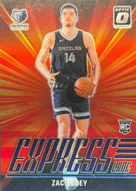 The Zach Edey 2024 Optic #10 Express Lane - Purple Rookie card in Raw condition has moved down -$1.00 (-50.3%) in the last 30 days and was last sold for $0.99 .