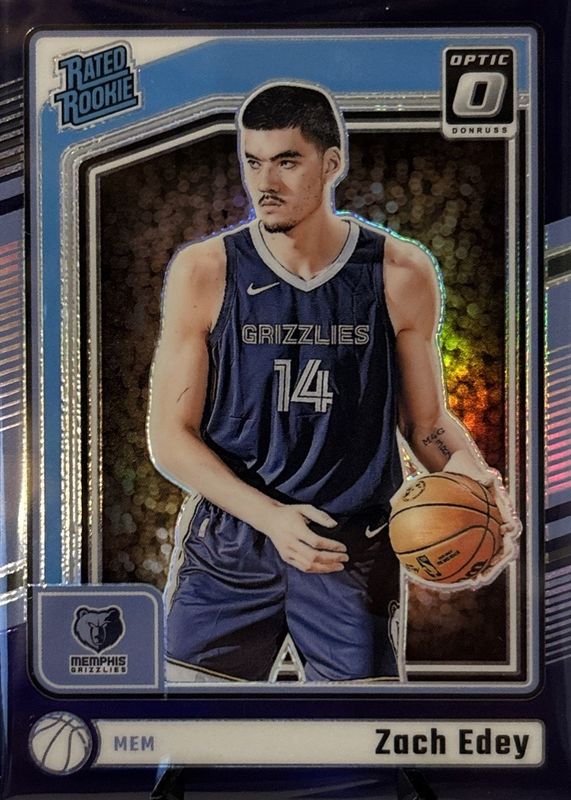 The Zach Edey 2024 Optic #288 Purple Rookie card in Raw condition has moved up $2.00 (+202%) in the last 30 days and was last sold for $2.99 .
